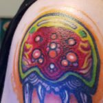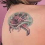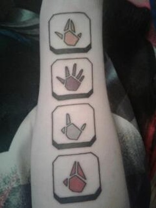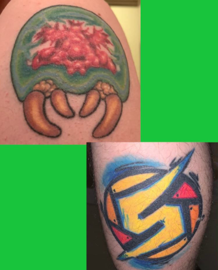 Kabutroid’s (shoutout to Planet Zebeth!) lovely shoulder tattoo borrows from the Metroid Prime gallery, but the blue shading was color corrected for it to match the lovely metroid-green we all know and love.