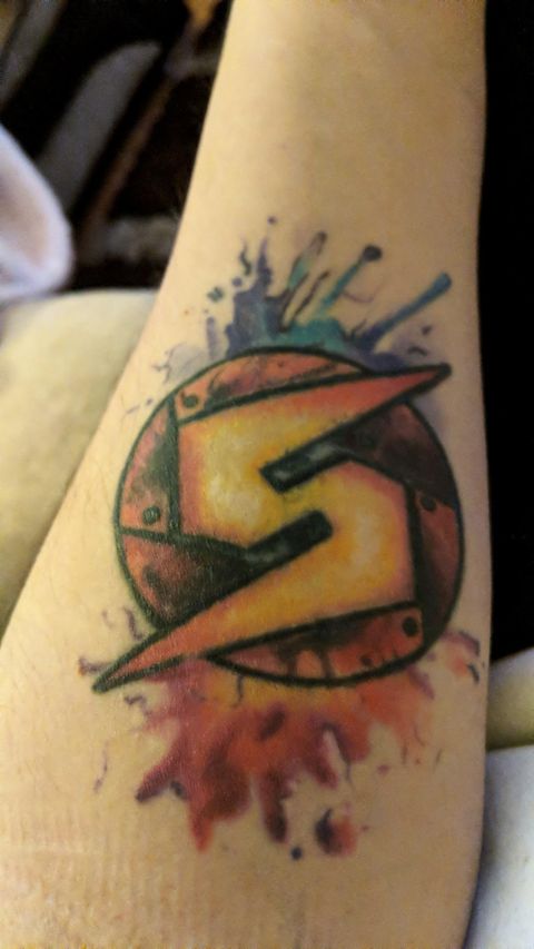 Ryan got this tat in 2019. Taking from both Metroid and Treasure Planet with the portal serving as the background, it was an excellent choice for a first tattoo.