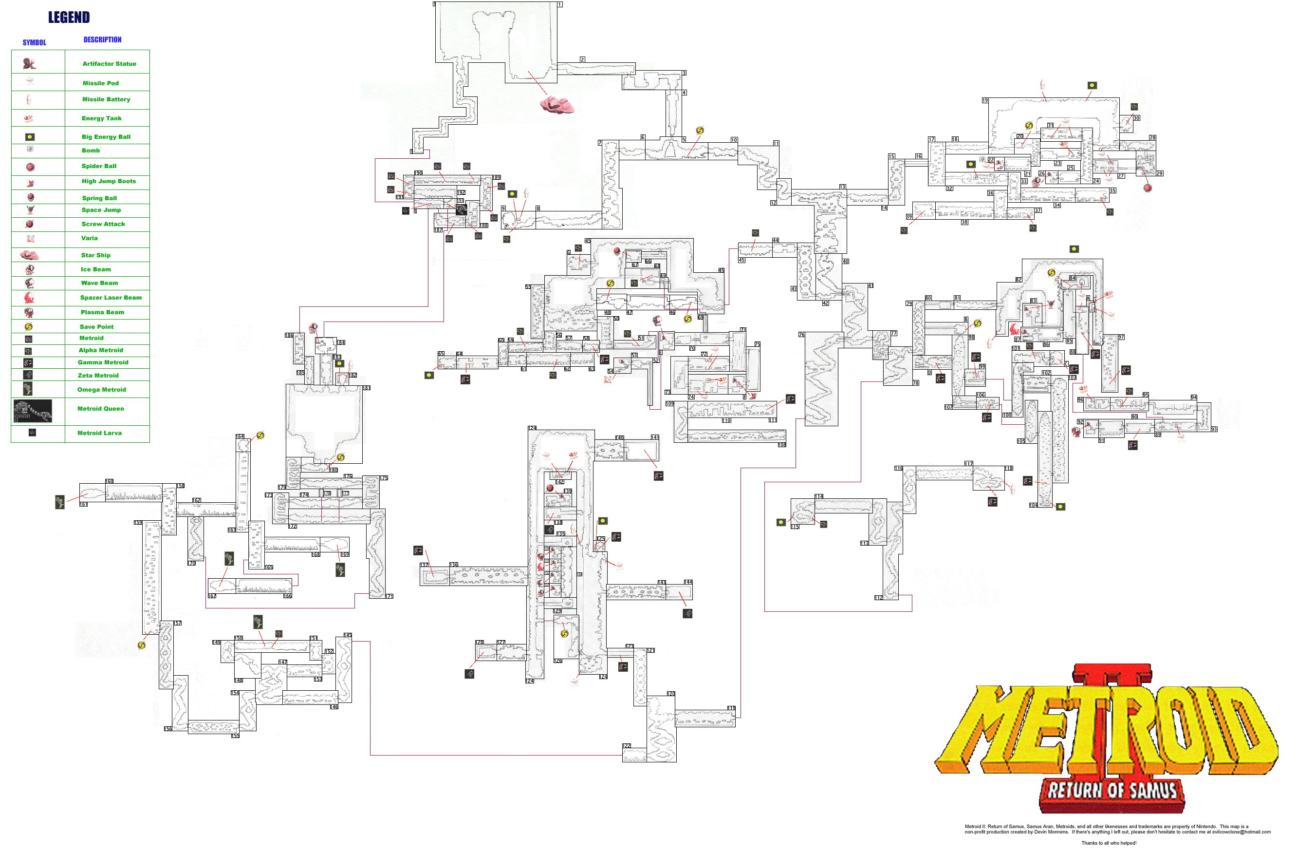 Now this is more like it! The complete maps and item/Metroid locations for Metroid II, with strategies and advice for each phase of the game.