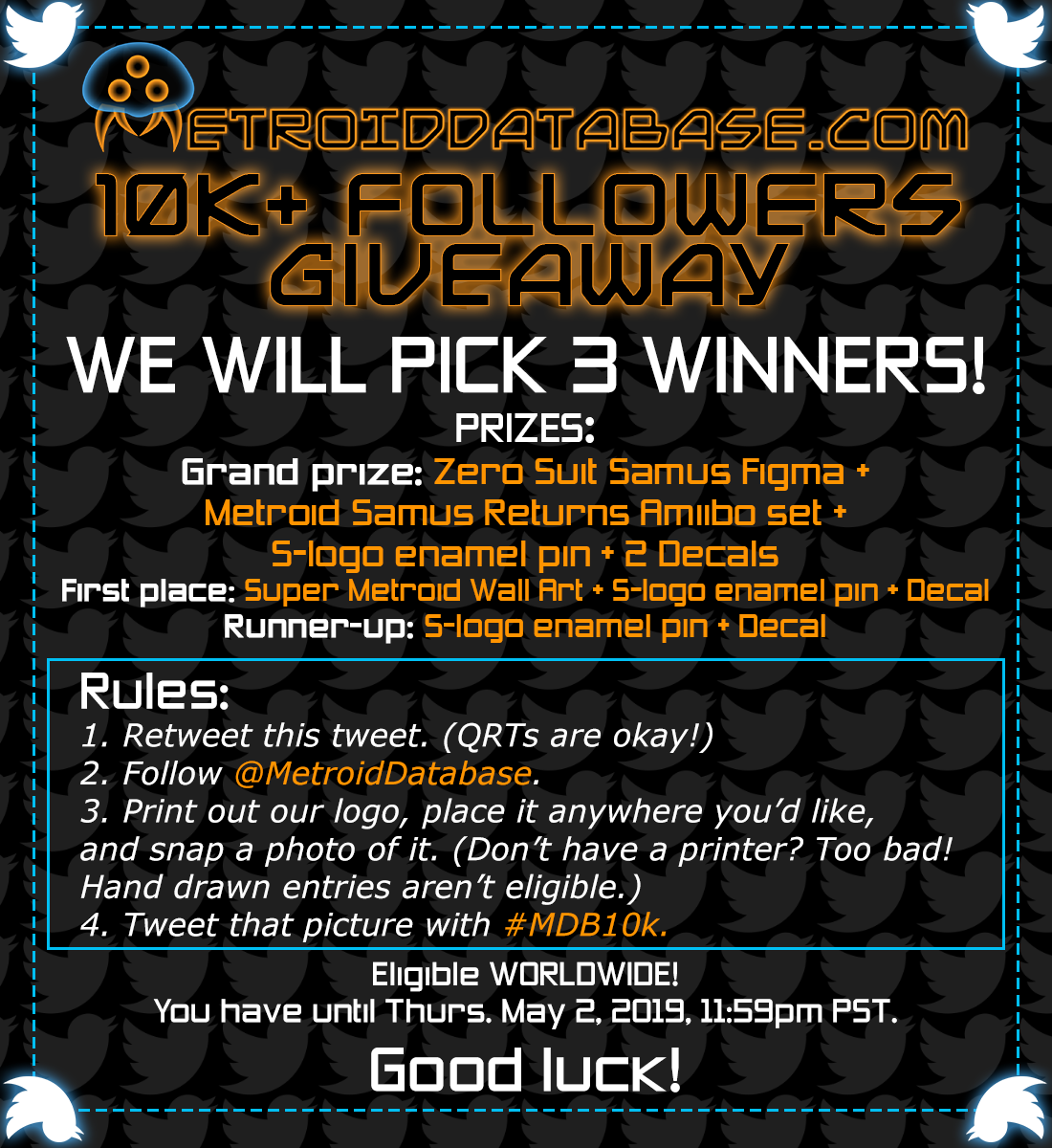 If you own any Metroid Database swag with our logo on it, you can also use that as an entry as long as you follow all the other rules.