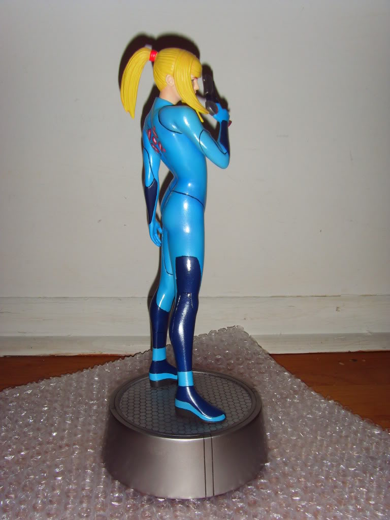 It’s a very rare and much needed statue of Samus Aran without her signature Chozo Power Suit. Paint and detailing on the statue itself is very well done though there are some very minor detailing flaws, mainly the black lines on the Zero Suit.